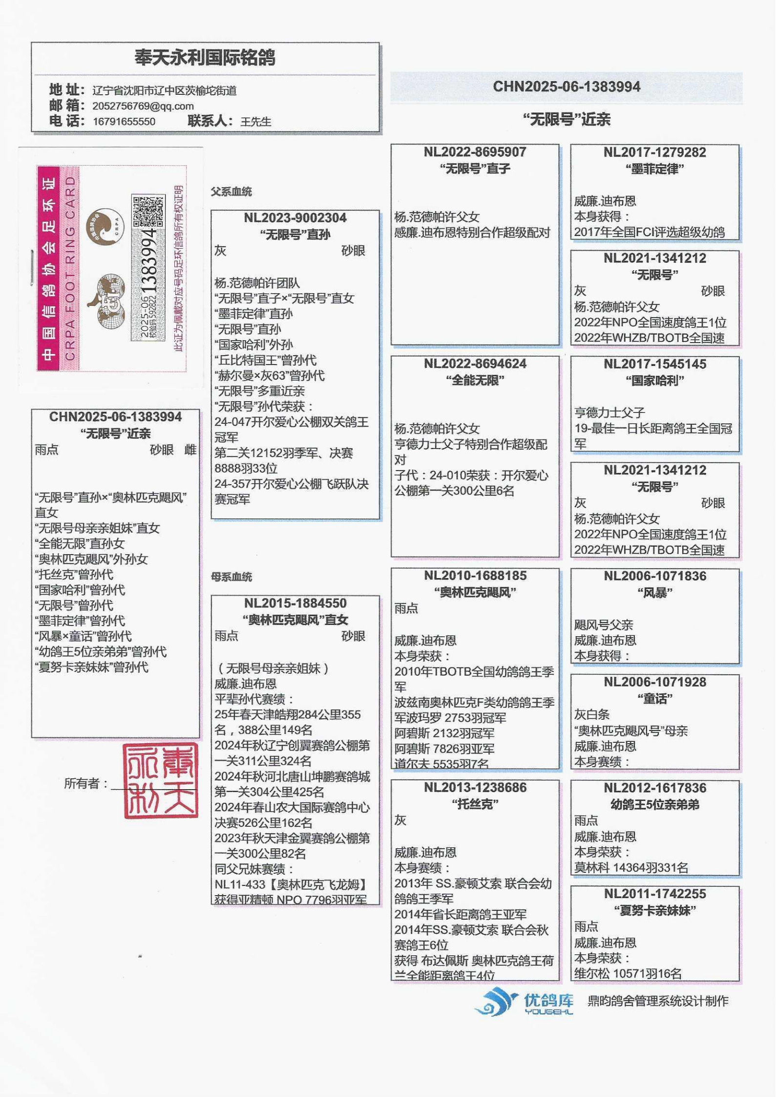 - 当前查看拍卖鸽:“无限号”曾孙代“无限号”直孙ד奥林匹