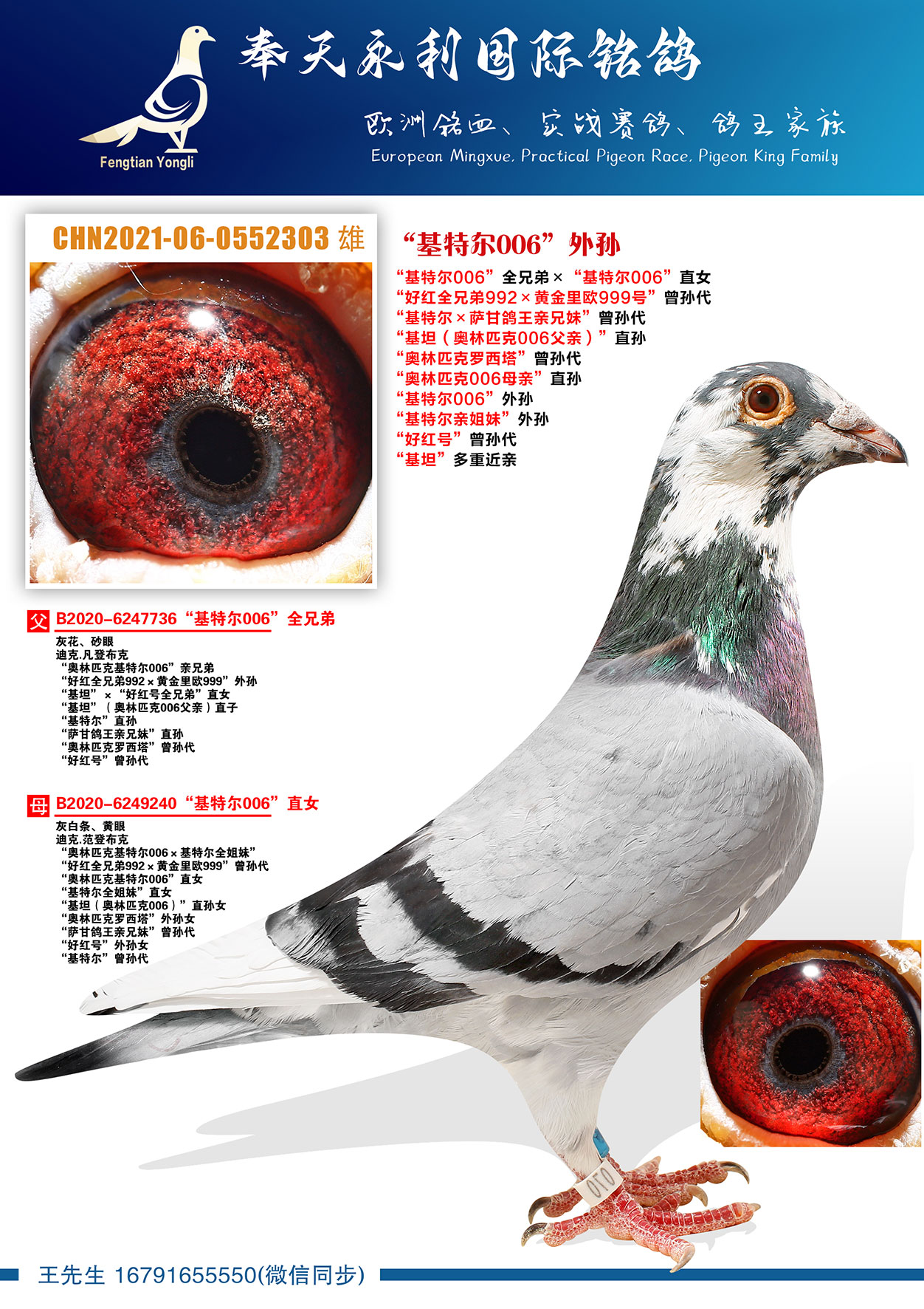 “基特尔×萨甘鸽王亲兄妹”曾孙代