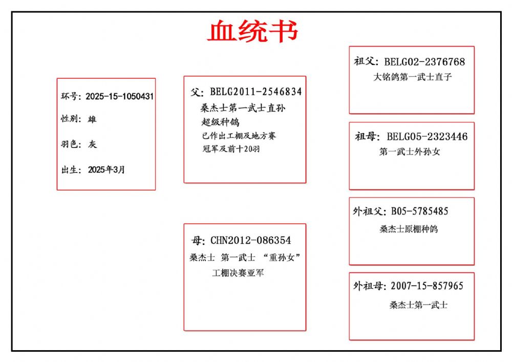 - 当前查看拍卖鸽:(重点推荐)桑杰士第一武士直孙X第一武士