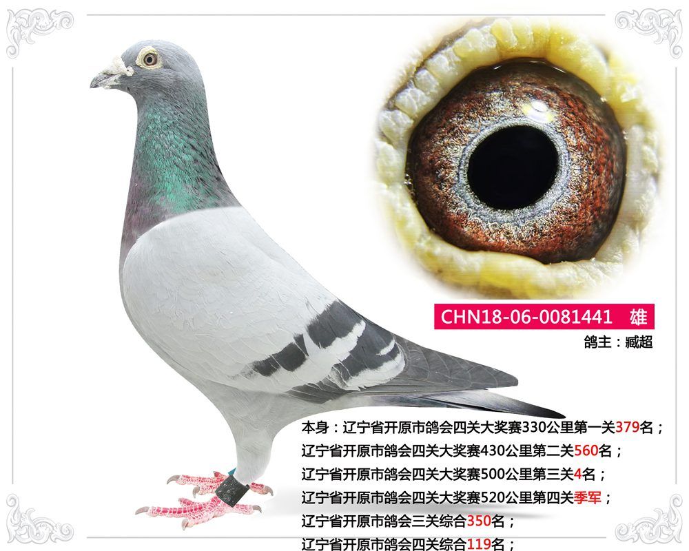 辽宁省开原市鸽会四关大奖赛520公里第四关季军;