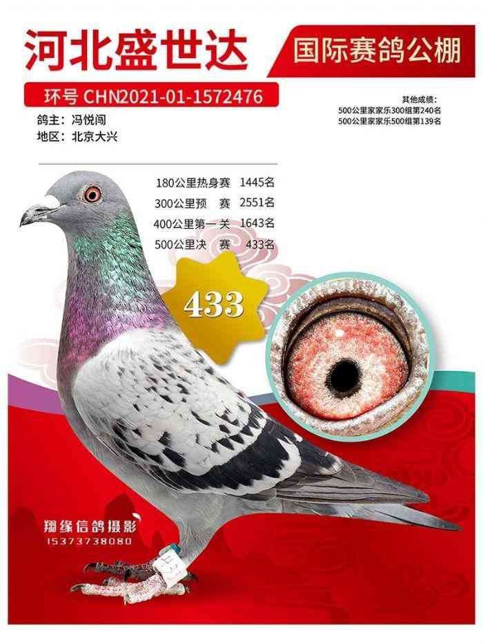 张家口盛世达国际赛鸽公棚500公里决赛433名;