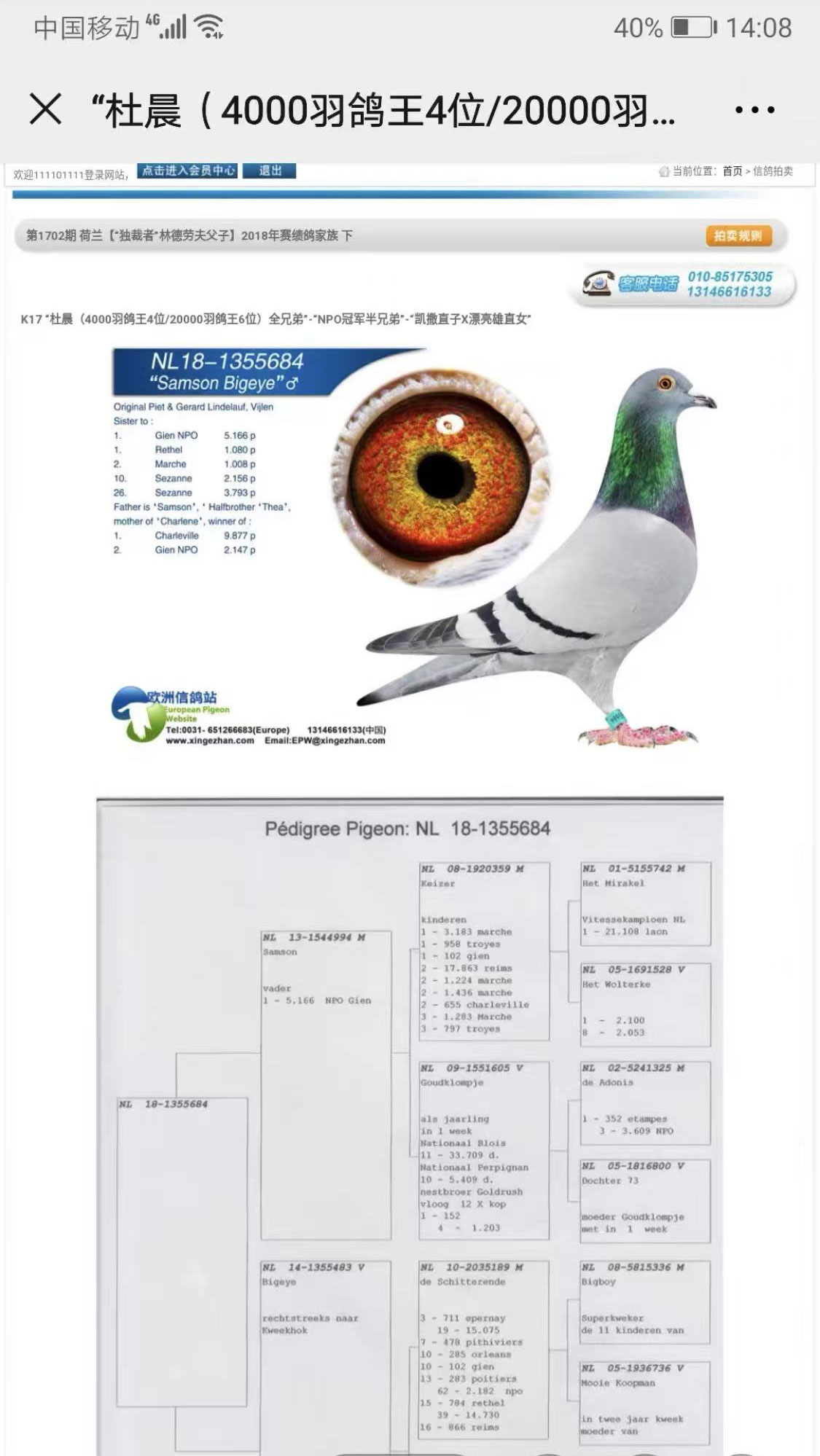 注明:5年以上的老鸽子更换环境有可能造成不能作育,请你谨慎出价;