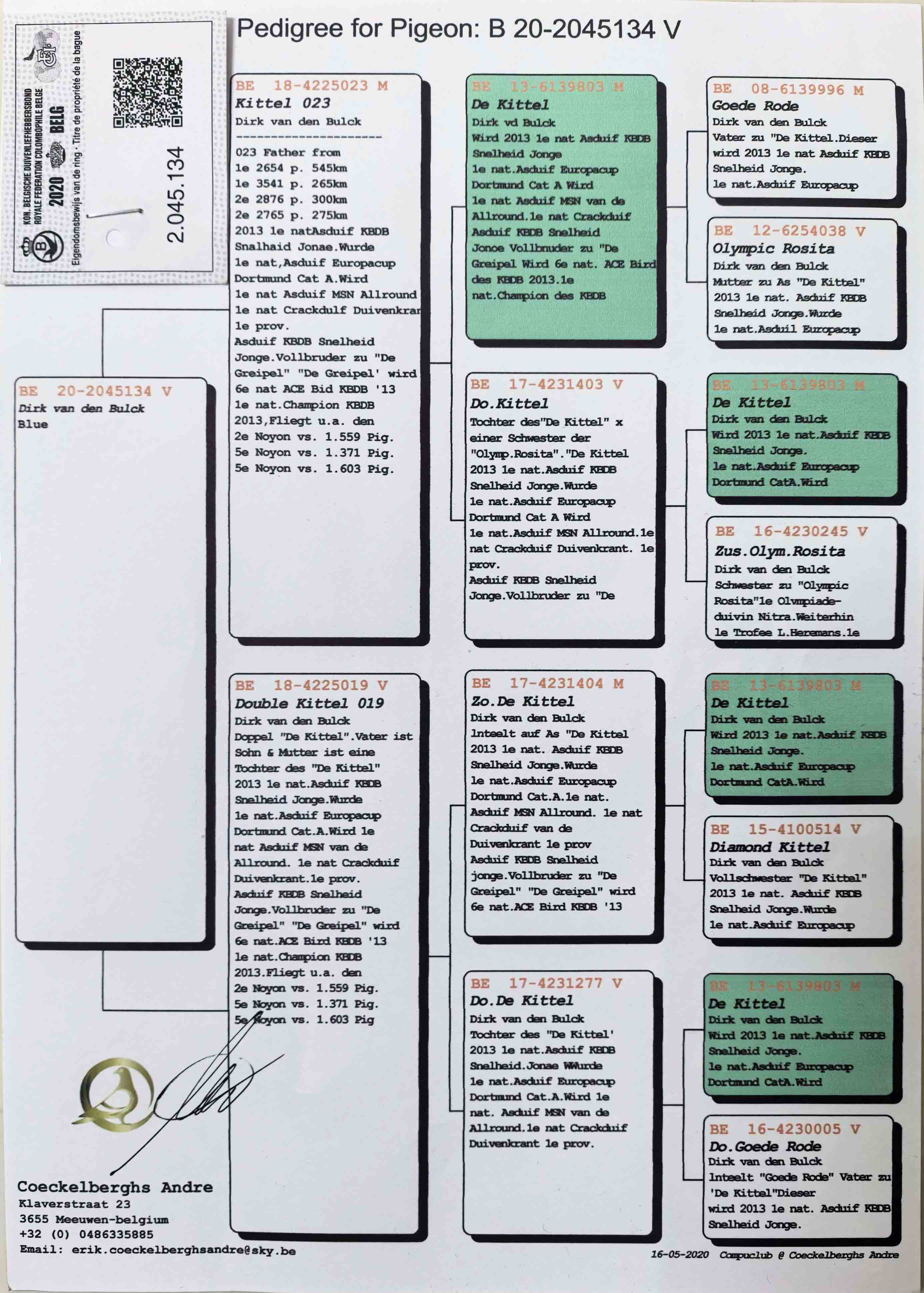 - 当前查看拍卖鸽:范登布克:基特尔-近亲孙女134