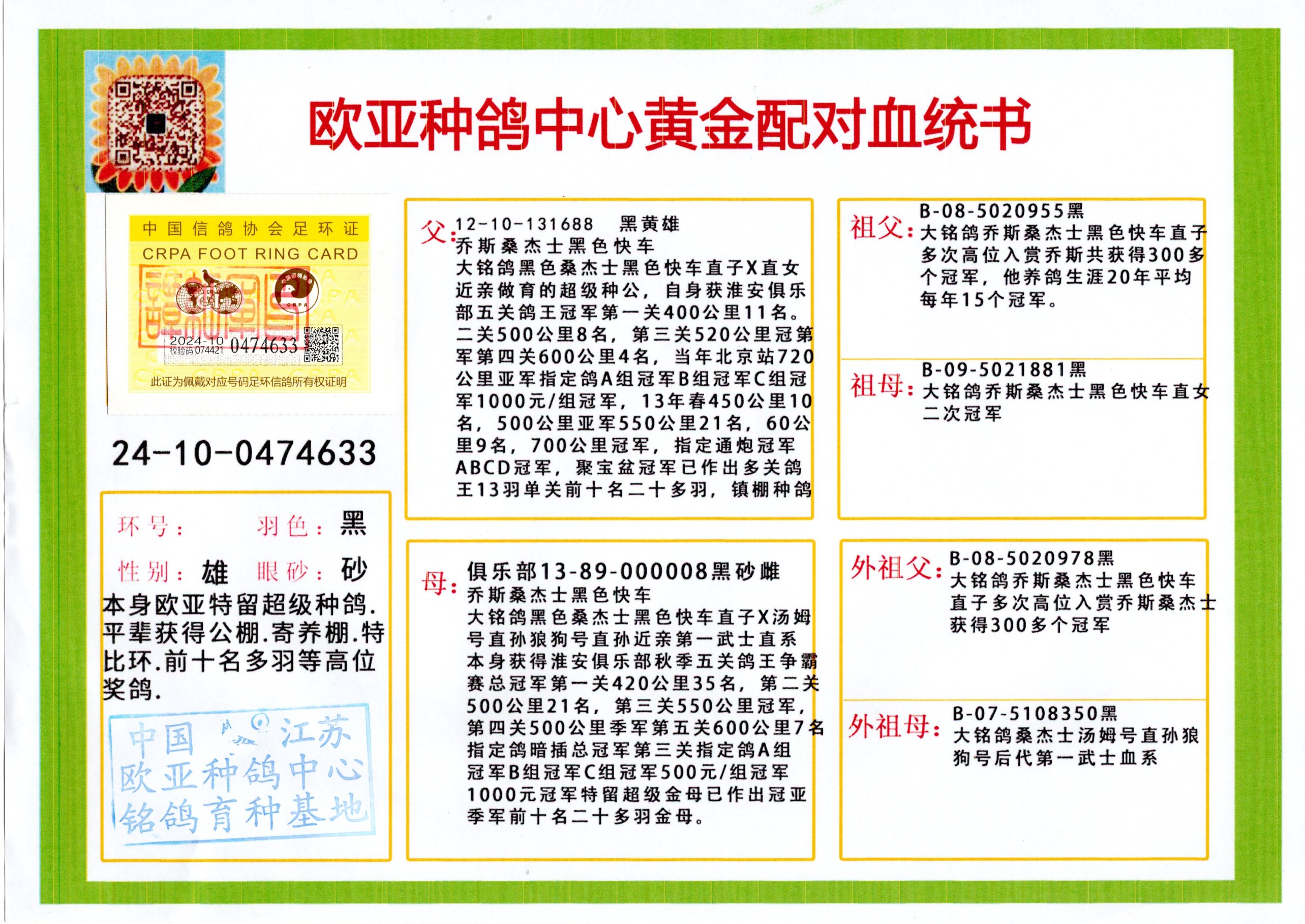 24年秋南京特比环欧亚荣获大团体冠军.小团体冠军551公里大特比13名.14名.16名.19名.20名.21名.24名.26名.27名.28名.42名.52名.54名.57名.65名.66名.68名.70名.71名.72名.74名.76名.80名.82名.83名.84名.85名.86名.90名.92名.110名.116名.121名.122名.128名.131名.158名.161名.164名.165名.166名.172名.174名.177名.182名.195名.196名.201名.205名.208名.210名.216名.253名.269名.275名.276名.294名.296名.299名,,24年秋云南天南铜都公棚决赛415名.天南铜都小棚决赛409名.云南玉活公棚决赛102名.490名.团体32名上笼二羽进二羽,天南铜都大棚506公里决赛445名。热烈祝贺河北省巨鹿县李兰生老师用欧亚泰山号血系连续十一年夺冠军,河北省国家赛冠军.全国季军等多次前十名高位,扬州王军王总用欧亚利奥24年春季获山东翔宇公棚决赛33名盖比53名。南京刘正龙刘总用欧亚盖比获得24年秋山东潍坊国际公棚决赛42名.精英赛30名.三关鸽王71名.决赛86名.加站赛16名.南京市特比环A组鸽王9名.B组鸽王5名.6名.C组鸽王5名.精英赛冠军4名.技能赛A组冠军4名.5名.秦淮区特比环荣获15名.46名.48名.87名。四川西昌徐亮徐总用欧亚利奥获得凉山州聚友决赛177名.第二关亚军双关鸽王19名.三关鸽王105名.云南豪庭公棚决赛603名。热烈祝贺24年四川重庆翔园鸽舍用欧亚泰山号荣获春季400公里冠军.秋季500公里冠军,河北王总用詹森X利奥获得千羽千翔公棚400公里冠军,广东蔡楷焕荣获24年秋爱好者 赛鸽俱乐部三关鸽王季军.一关420公里99名.二关450公里11名.三关520公里32名.单关季军.7名.12名,江西李卫兴荣获贵州红枫公棚8名.共翔俱乐部寄养棚四关综合鸽王30名.一关400公里78名.二关500公里55名.三关520公里37名.四关500公里57名.同父母获公棚18名.雷鸣获得武汉黄浦育翔中心冠军,四川陈文获得四川明鸿俱乐部300公里梦幻2名.3名.4名.9名.10名.13名.14名.15名.31名.34名.40名.41名.42名.43名.69名.71名.72名.73名.74名.94名.95名.97名.98名.99名.419公里决赛荣获总冠军7名.总共归巢9羽,四川徐亮获豪庭决赛603名,山西郑勇获得山西泰鑫公棚决赛255名詹森红狐,热烈祝贺马总获得开尔(飞跃队)决赛9名获奖金1310000万元.第一关52名,天津津福资赛180公里96名.获奖金429543万元,欧亚支持全国鸽友24年秋多人报喜 祝大家取得更好成绩,给欧亚报喜鸽友欧亚决定给每人赠送一羽超级种鸽。欧亚俱乐部特比环多关鸽王成绩:15年秋淮安特比环黑色星期一全会上笼9700多羽,当天无鸽归巢,第二天全会归巢357羽,本舍归巢158羽.前十名八羽.前一百名归巢57羽,16年春季获五关鸽王总冠军,总亚军四名.六名.七名.九名.十名.晶艺俱乐部520公里冠亚季军5名.6名.7名.9名.11名等,火车头冠军.季军6名.8名.9名.10名,16年秋晶艺俱乐部特比环520公里亚军.季军4名.6名.7名.9名,15年春南京白下特比环冠军.亚军.季军6名.7名.8名.9名.10名.指定鸽A B组获得冠军.亚军.季军4名.5名.,17年淮安特比环亚军.4名.5名.7名.8名.10名.六关鸽王总冠军.4名.6名.9名.10名,寄养棚宿迁刘总20羽特比环获冠军.季军.4名.7名.8名.9名等。18年荣获万羽特比环六关鸽王总冠军.总亚军.总季军.6名.8名.十名.单关四羽冠军.二羽亚军.四羽季军.前十名27羽。19年秋万羽特比环六关鸽王总亚军.总季军.5名.8名等,单关二羽冠军.三羽亚军.一羽季军前十名31羽。20年秋淮安市鸽会四关特比环大赛风雨无阻鸽王亚军.鸽王六名,金品俱乐部万羽特比环六关鸽王总冠军,总亚军.四名.五名.六名.七名.八名.十名.前二百名鸽王35羽,单关冠亚季军前十名四十多羽,火车头五关鸽王季军.六名.八名.前二百名鸽王十七羽。20年春荣获淮安五区一市四关鸽王总冠军.亚军.四名.八名.九名。21年秋荣获金品万羽特比环大赛六关鸽王总亚军.总季军.四名.七名.九名.十名.单关冠亚军季军前十名三十多羽。火车头协会鸽王六名.七名.十名.单关前十名十七羽。22年秋荣获鸽王总冠军.总亚军.5名.7名.8名.9名.11名.单关冠亚季军前十名三十多羽,第一关单关前二百名四十多羽,第二关前二百名三十多羽,第三关前二百名四十多羽,第四关前二百名四十多羽,第五关前一百名53羽。23年秋荣获鸽王季军.五名.八名.十名.13名.17名.20名.27名等多羽鸽王.单关前十名二十多羽。公棚.寄养棚部分成绩:16年秋宁夏黄河公棚总冠军电脑戈马力指定通炮冠军,17年送八羽参赛获得鸽王八名进奖四名,支持韩总荣获八名。支持鸽友荣获宁夏中卫公棚决赛总冠军.精英赛冠军,支持18年宁夏黄河公棚决赛冠军詹森X泰山。安徽鼎博寄养棚院内外四关鸽王总冠军.鸽王十七名.三十七名同窝,鸽王39名.42名.58名.67名。18年山东公棚预赛冠军.决赛65名.送八羽进奖五羽.指定获奔驰汽车一辆。支持鸽友获得云南蓝云公棚冠军.盖比X佛卡门。支持鸽友荣获云南银集公棚决赛冠军 詹森427X520血系 速度赛6700羽冠军。17年荣获金马俱乐部寄养棚四关鸽王总冠军.季军.六名.八名.第一关冠军.亚军.季军四名.七名.十一名.金牌教练奖。支持鸽友18年北京费翔公棚预赛九名电脑X桑杰士,支持鸽友荣获陕西威力公棚决赛11名.内蒙古临河寄养棚四关鸽王六名.詹森配泰山,支持河北王总用欧亚詹森427配胡本喜获20年秋开尔青年棚季军。云南东荣公棚16年预赛冠军.决赛77名.17年决赛12名.詹森红狐X泰山,17年平安公棚决赛4名 詹森427。欧亚获得21年金母寄养棚第一关四名.第二关5名.第三关5名.6名.7名.10名.三关鸽王总冠军,四关鸽王14名.十羽鸽王。支持河