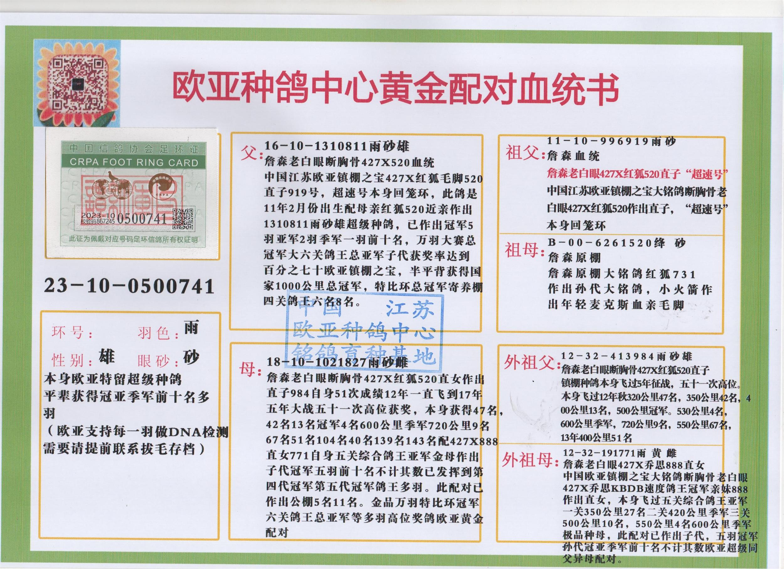 24年秋南京特比环欧亚荣获大团体冠军.小团体冠军551公里大特比13名.14名.16名.19名.20名.21名.24名.26名.27名.28名.42名.52名.54名.57名.65名.66名.68名.70名.71名.72名.74名.76名.80名.82名.83名.84名.85名.86名.90名.92名.110名.116名.121名.122名.128名.131名.158名.161名.164名.165名.166名.172名.174名.177名.182名.195名.196名.201名.205名.208名.210名.216名.253名.269名.275名.276名.294名.296名.299名,,24年秋云南天南铜都公棚决赛415名.天南铜都小棚决赛409名.云南玉活公棚决赛102名.490名.团体32名上笼二羽进二羽,天南铜都大棚506公里决赛445名。热烈祝贺河北省巨鹿县李兰生老师用欧亚泰山号血系连续十一年夺冠军,河北省国家赛冠军.全国季军等多次前十名高位,扬州王军王总用欧亚利奥24年春季获山东翔宇公棚决赛33名盖比53名。南京刘正龙刘总用欧亚盖比获得24年秋山东潍坊国际公棚决赛42名.精英赛30名.三关鸽王71名.决赛86名.加站赛16名.南京市特比环A组鸽王9名.B组鸽王5名.6名.C组鸽王5名.精英赛冠军4名.技能赛A组冠军4名.5名.秦淮区特比环荣获15名.46名.48名.87名。四川西昌徐亮徐总用欧亚利奥获得凉山州聚友决赛177名.第二关亚军双关鸽王19名.三关鸽王105名.云南豪庭公棚决赛603名。热烈祝贺24年四川重庆翔园鸽舍用欧亚泰山号荣获春季400公里冠军.秋季500公里冠军,河北王总用詹森X利奥获得千羽千翔公棚400公里冠军,广东蔡楷焕荣获24年秋爱好者 赛鸽俱乐部三关鸽王季军.一关420公里99名.二关450公里11名.三关520公里32名.单关季军.7名.12名,江西李卫兴荣获贵州红枫公棚8名.共翔俱乐部寄养棚四关综合鸽王30名.一关400公里78名.二关500公里55名.三关520公里37名.四关500公里57名.同父母获公棚18名.雷鸣获得武汉黄浦育翔中心冠军,四川陈文获得四川明鸿俱乐部300公里梦幻2名.3名.4名.9名.10名.13名.14名.15名.31名.34名.40名.41名.42名.43名.69名.71名.72名.73名.74名.94名.95名.97名.98名.99名.419公里决赛荣获总冠军7名.总共归巢9羽,四川徐亮获豪庭决赛603名,山西郑勇获得山西泰鑫公棚决赛255名詹森红狐,热烈祝贺马总获得开尔(飞跃队)决赛9名获奖金1310000万元.第一关52名,天津津福资赛180公里96名.获奖金429543万元,欧亚支持全国鸽友24年秋多人报喜 祝大家取得更好成绩,给欧亚报喜鸽友欧亚决定给每人赠送一羽超级种鸽。欧亚俱乐部特比环多关鸽王成绩:15年秋淮安特比环黑色星期一全会上笼9700多羽,当天无鸽归巢,第二天全会归巢357羽,本舍归巢158羽.前十名八羽.前一百名归巢57羽,16年春季获五关鸽王总冠军,总亚军四名.六名.七名.九名.十名.晶艺俱乐部520公里冠亚季军5名.6名.7名.9名.11名等,火车头冠军.季军6名.8名.9名.10名,16年秋晶艺俱乐部特比环520公里亚军.季军4名.6名.7名.9名,15年春南京白下特比环冠军.亚军.季军6名.7名.8名.9名.10名.指定鸽A B组获得冠军.亚军.季军4名.5名.,17年淮安特比环亚军.4名.5名.7名.8名.10名.六关鸽王总冠军.4名.6名.9名.10名,寄养棚宿迁刘总20羽特比环获冠军.季军.4名.7名.8名.9名等。18年荣获万羽特比环六关鸽王总冠军.总亚军.总季军.6名.8名.十名.单关四羽冠军.二羽亚军.四羽季军.前十名27羽。19年秋万羽特比环六关鸽王总亚军.总季军.5名.8名等,单关二羽冠军.三羽亚军.一羽季军前十名31羽。20年秋淮安市鸽会四关特比环大赛风雨无阻鸽王亚军.鸽王六名,金品俱乐部万羽特比环六关鸽王总冠军,总亚军.四名.五名.六名.七名.八名.十名.前二百名鸽王35羽,单关冠亚季军前十名四十多羽,火车头五关鸽王季军.六名.八名.前二百名鸽王十七羽。20年春荣获淮安五区一市四关鸽王总冠军.亚军.四名.八名.九名。21年秋荣获金品万羽特比环大赛六关鸽王总亚军.总季军.四名.七名.九名.十名.单关冠亚军季军前十名三十多羽。火车头协会鸽王六名.七名.十名.单关前十名十七羽。22年秋荣获鸽王总冠军.总亚军.5名.7名.8名.9名.11名.单关冠亚季军前十名三十多羽,第一关单关前二百名四十多羽,第二关前二百名三十多羽,第三关前二百名四十多羽,第四关前二百名四十多羽,第五关前一百名53羽。23年秋荣获鸽王季军.五名.八名.十名.13名.17名.20名.27名等多羽鸽王.单关前十名二十多羽。公棚.寄养棚部分成绩:16年秋宁夏黄河公棚总冠军电脑戈马力指定通炮冠军,17年送八羽参赛获得鸽王八名进奖四名,支持韩总荣获八名。支持鸽友荣获宁夏中卫公棚决赛总冠军.精英赛冠军,支持18年宁夏黄河公棚决赛冠军詹森X泰山。安徽鼎博寄养棚院内外四关鸽王总冠军.鸽王十七名.三十七名同窝,鸽王39名.42名.58名.67名。18年山东公棚预赛冠军.决赛65名.送八羽进奖五羽.指定获奔驰汽车一辆。支持鸽友获得云南蓝云公棚冠军.盖比X佛卡门。支持鸽友荣获云南银集公棚决赛冠军 詹森427X520血系 速度赛6700羽冠军。17年荣获金马俱乐部寄养棚四关鸽王总冠军.季军.六名.八名.第一关冠军.亚军.季军四名.七名.十一名.金牌教练奖。支持鸽友18年北京费翔公棚预赛九名电脑X桑杰士,支持鸽友荣获陕西威力公棚决赛11名.内蒙古临河寄养棚四关鸽王六名.詹森配泰山,支持河北王总用欧亚詹森427配胡本喜获20年秋开尔青年棚季军。云南东荣公棚16年预赛冠军.决赛77名.17年决赛12名.詹森红狐X泰山,17年平安公棚决赛4名 詹森427。欧亚获得21年金母寄养棚第一关四名.第二关5名.第三关5名.6名.7名.10名.三关鸽王总冠军,四关鸽王14名.十羽鸽王。支持河