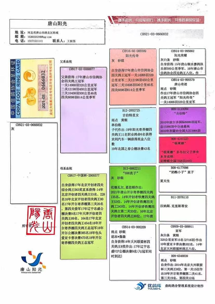 1653291 唐山阳光:鸽王七外孙女 ¥800元 4次