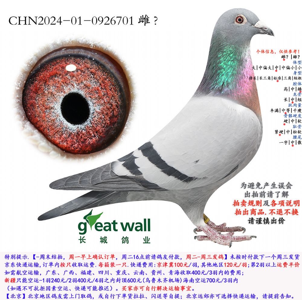 特别提示.【-周末结拍,周二16点前请鸽友付款,周三-周四发鸽。未按时付款,待付款后的下一个周三发货。】