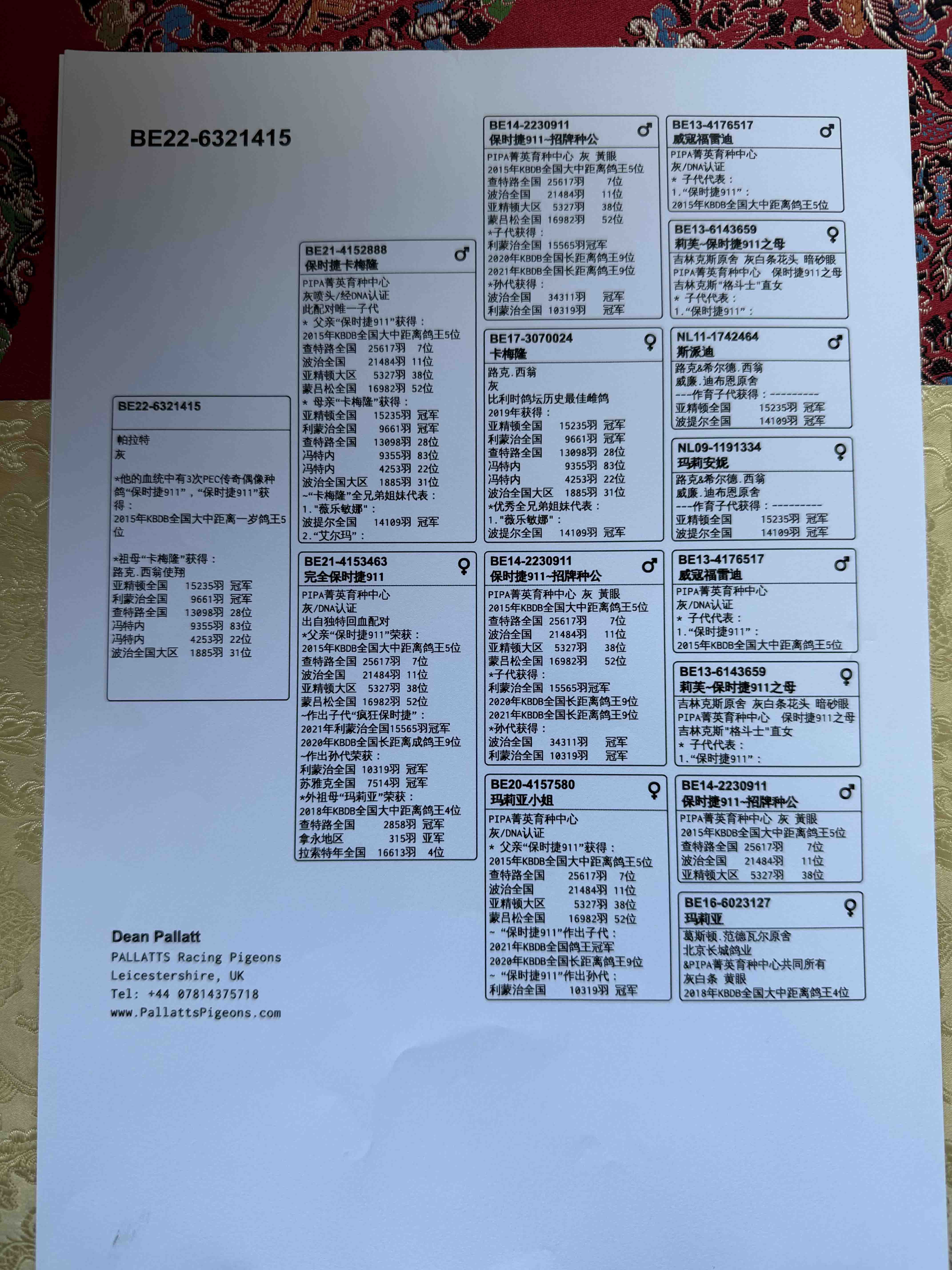 所有拍卖种鸽作育一切正常,因换环境不保作育~!