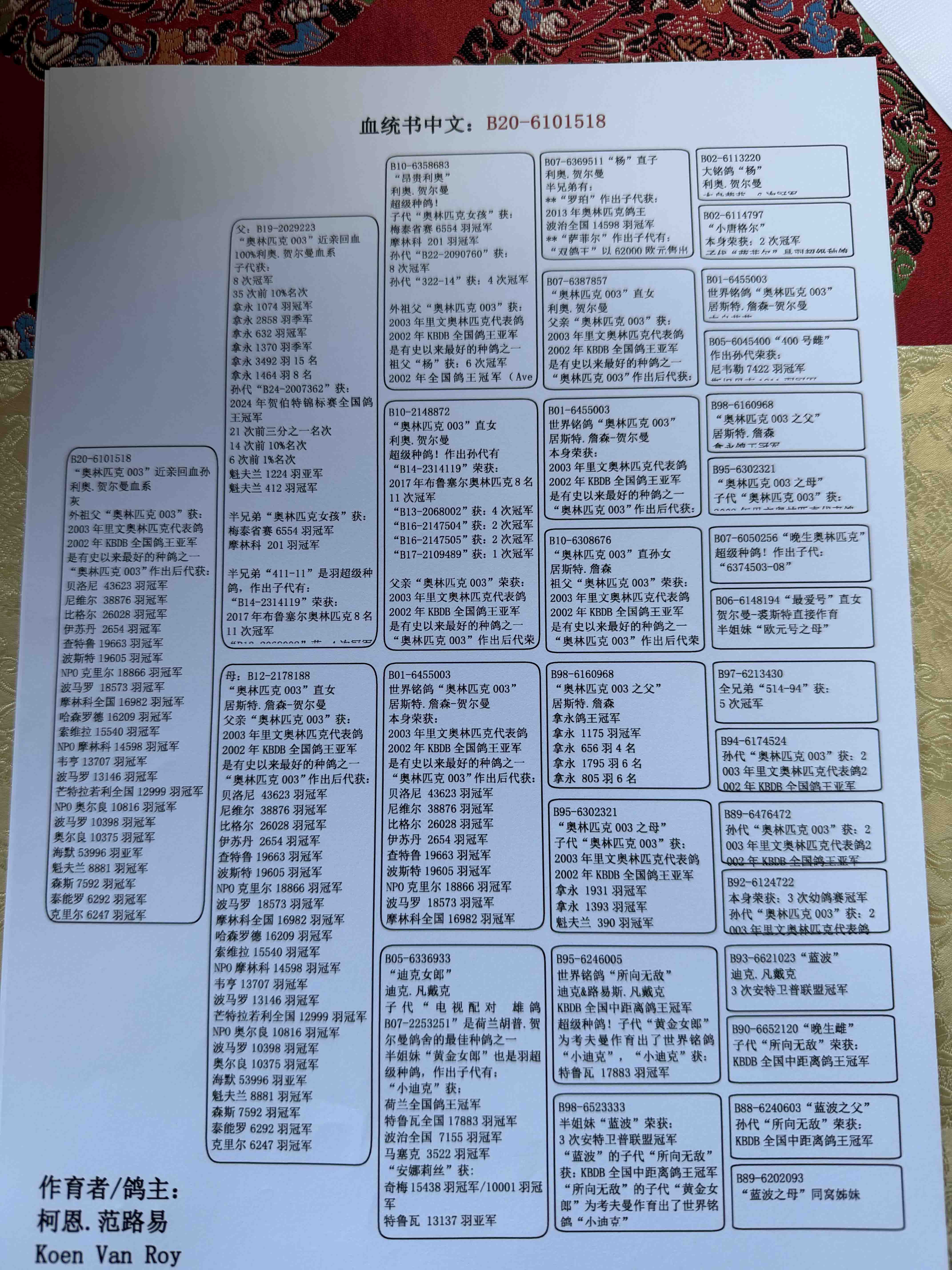 - 当前查看拍卖鸽:科恩范路易利奥003近亲回血作出518