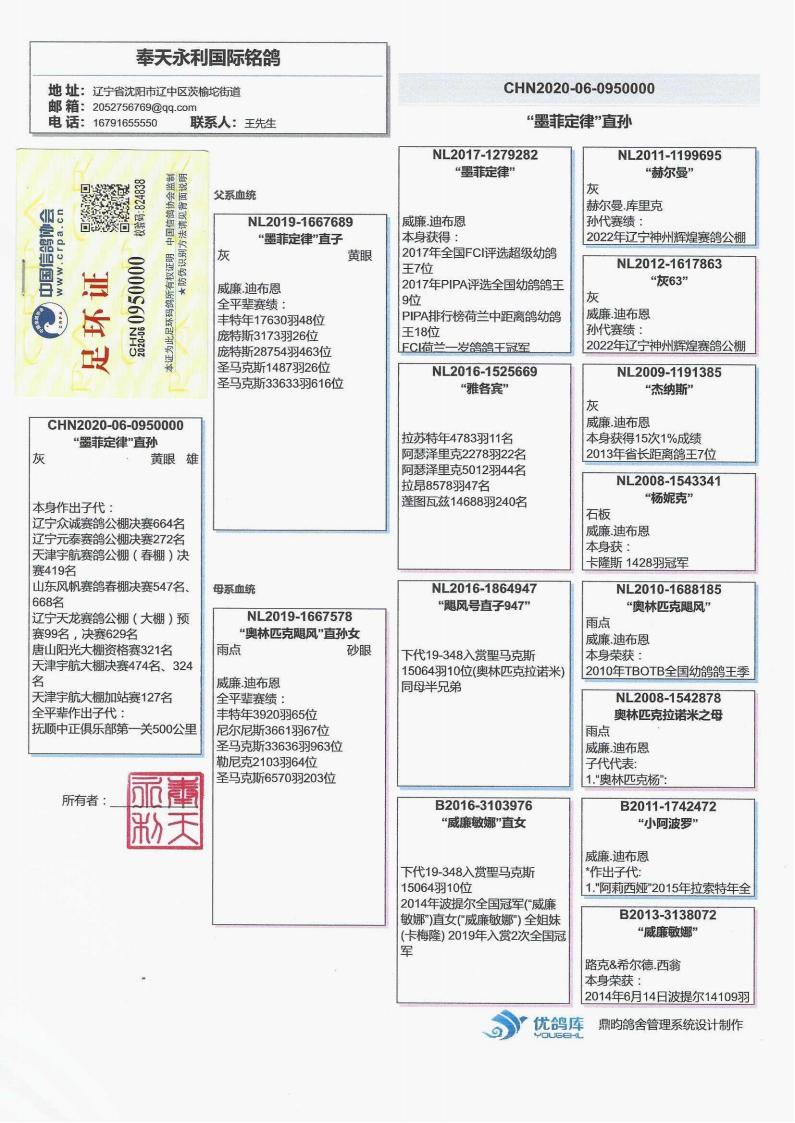 2024年图勒I640公里全国一岁鸽组5751羽22名;全国大区一岁鸽组季军;省赛一岁鸽组冠军;俱乐部冠军