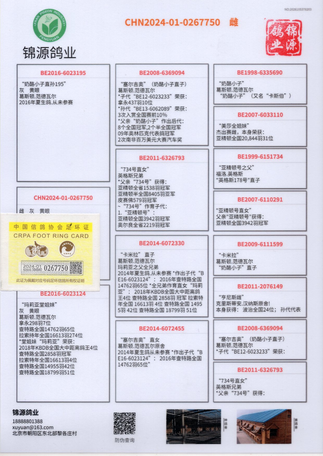 查特路全国2858羽冠军