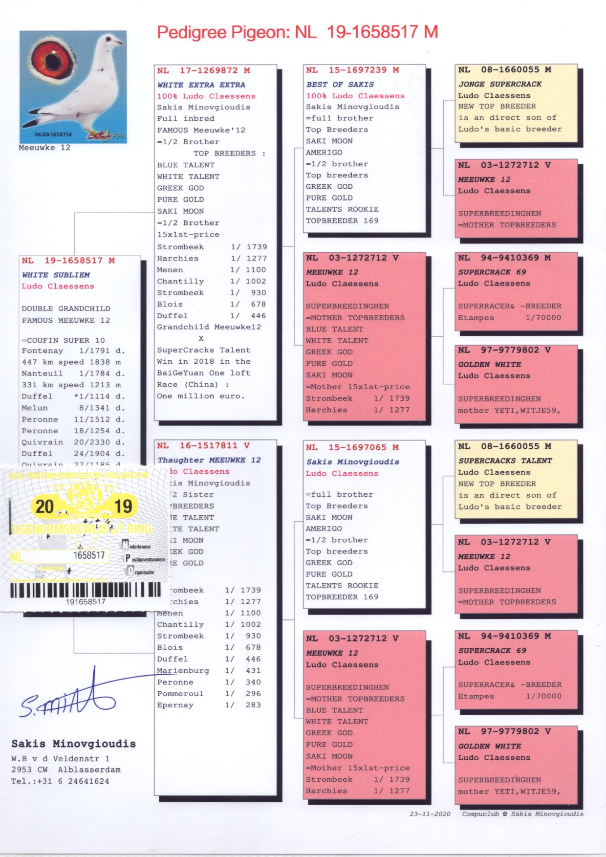 沙奇士.明诺吉奥帝原舍&沃特.史碧林(荷兰)现任顶级种鸽