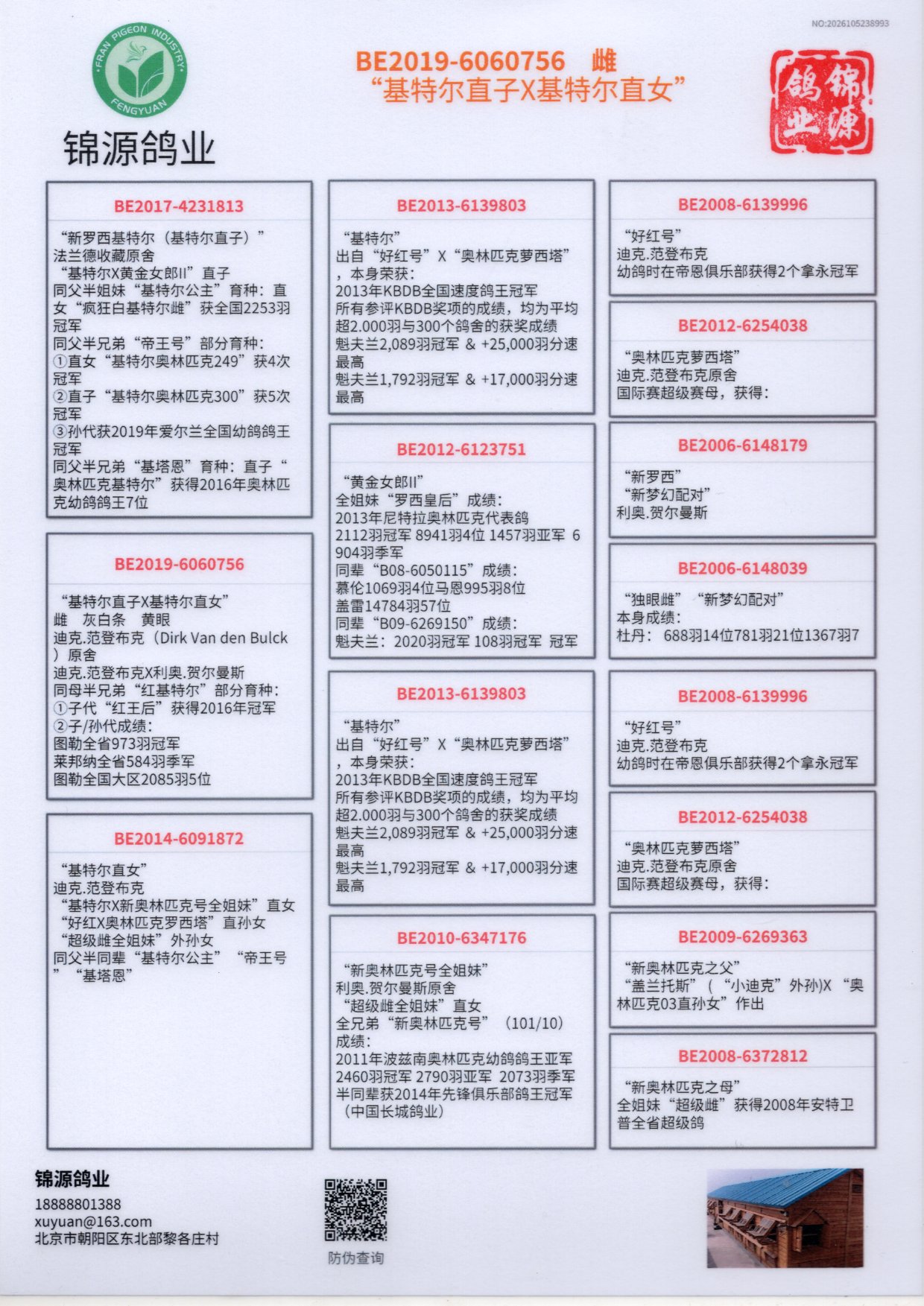 - 当前查看拍卖鸽:迪克.范登布克原舍“基特尔直子X基特尔直
