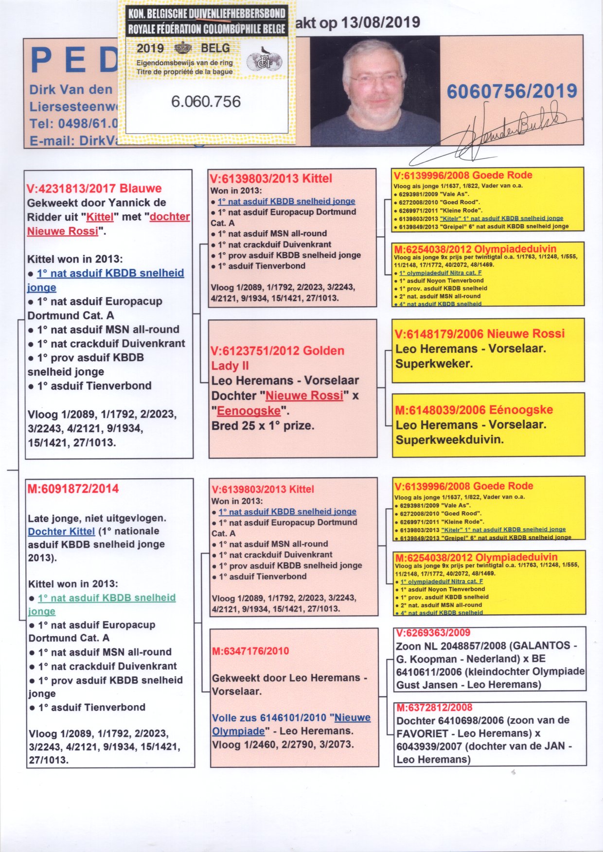同父半兄弟“基塔恩”育种:直子“奥林匹克基特尔”获得2016年奥林匹克幼鸽鸽王7位