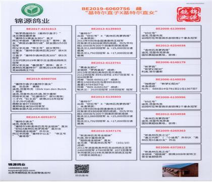 ①后代成绩:15次冠军 4个国家获7次以上冠军 美国获4次以上冠军(无重复) 3次联盟鸽王