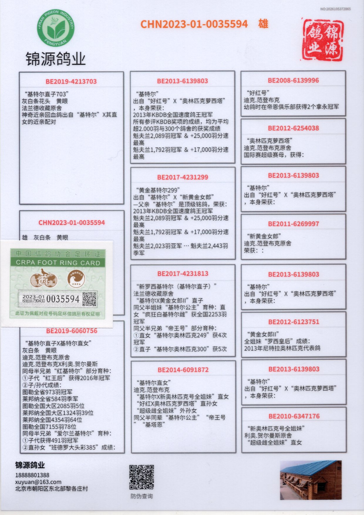 - 当前查看拍卖鸽:本场基特尔“703”X756多重回血23
