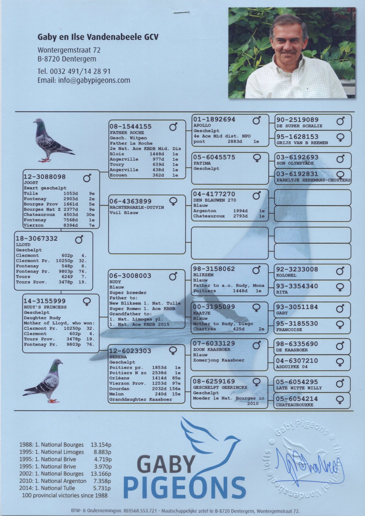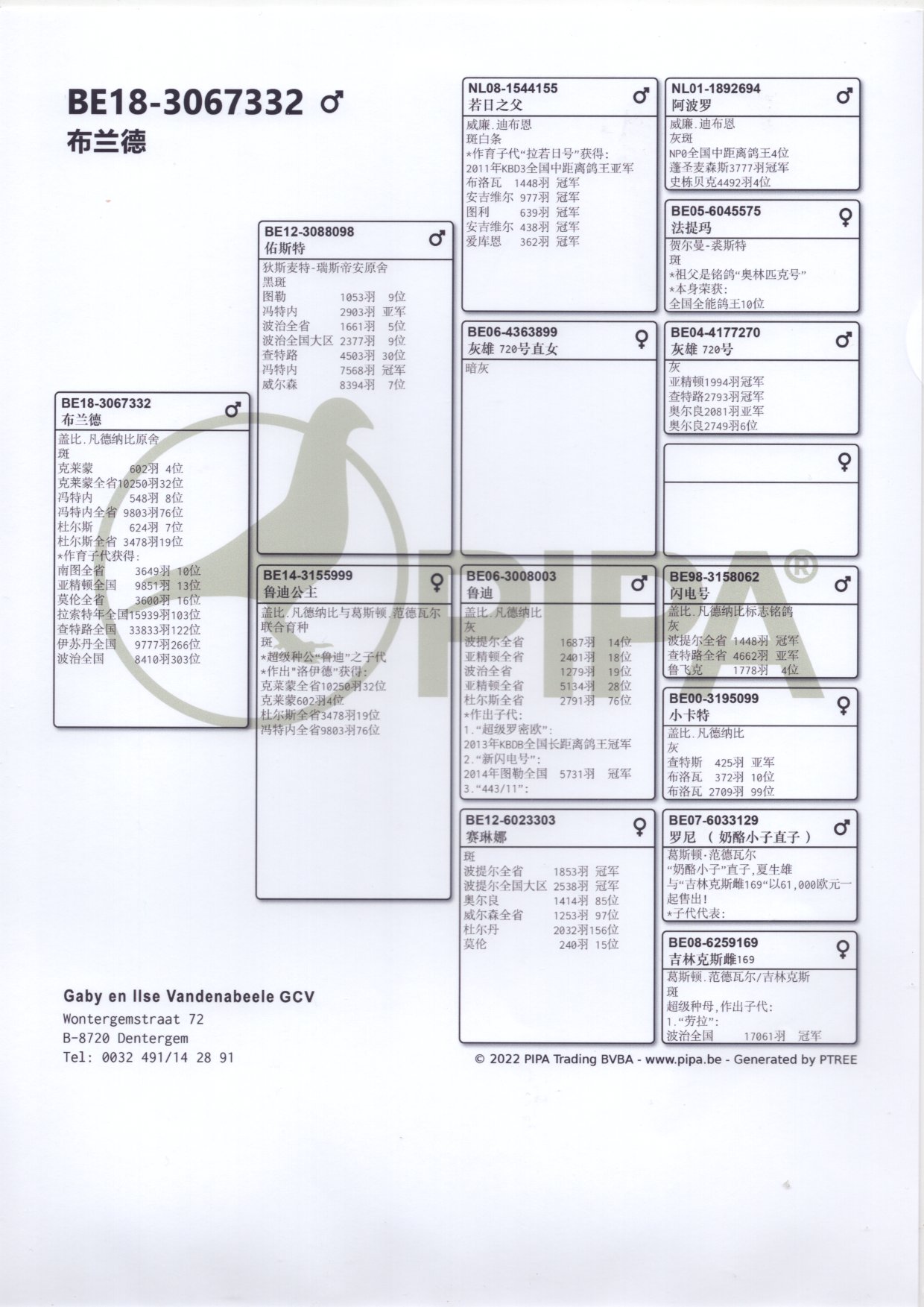2018年冯特内幼鸽548羽9位 /全省9,803羽76位