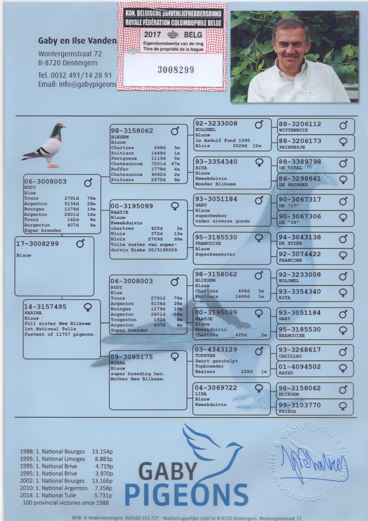 2011年布洛瓦全省一岁鸽3,080羽4位