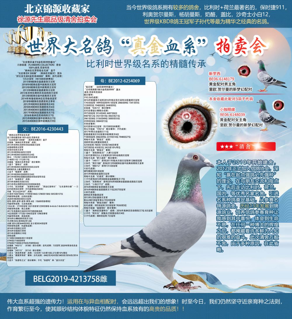②后代获得9次以上冠军和2019年幼鸽鸽王冠军