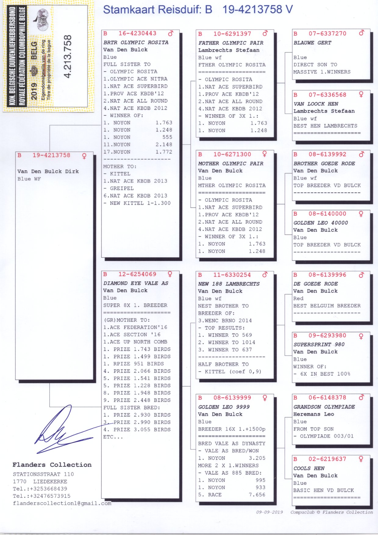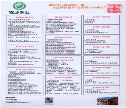 后代成绩:995羽冠军 933羽冠军 7656羽5位