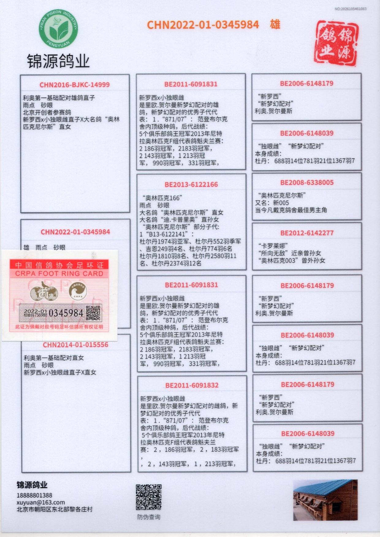 - 当前查看拍卖鸽:利奥22-0345984雄
