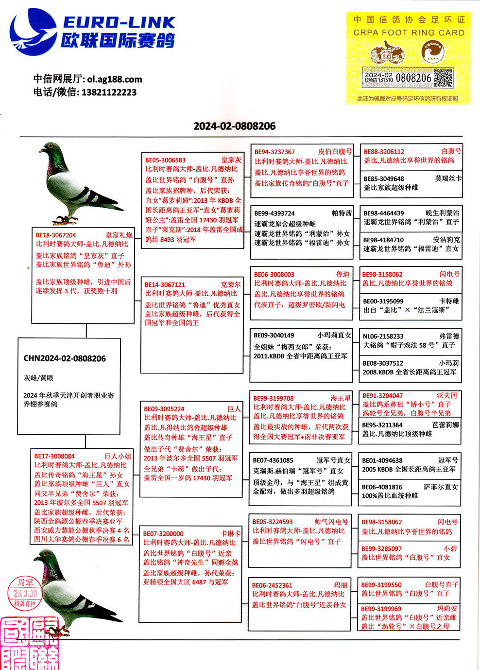 | 1658168 | KBDB超级鸽王互配直子 | ¥3600元 | 3次 |