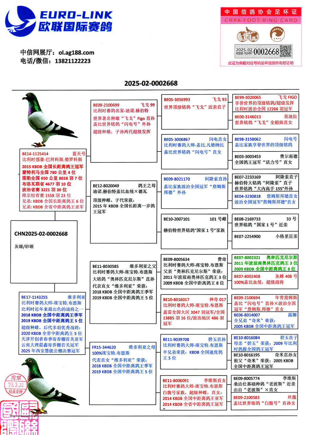 - 当前查看拍卖鸽:KBDB超级鸽王互配直子