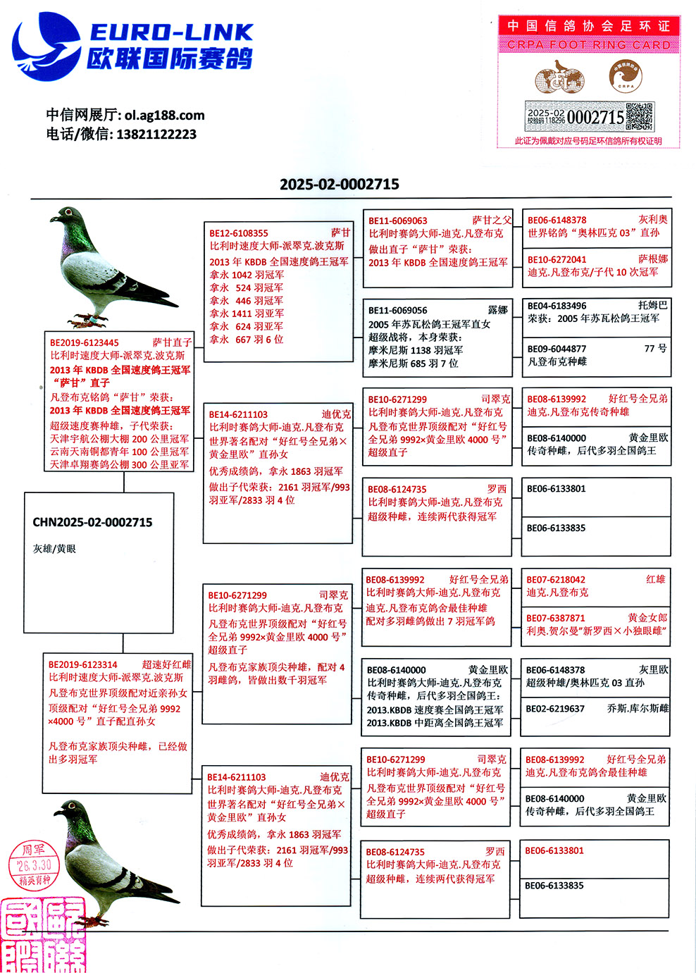 - 当前查看拍卖鸽:范登布克高代种雄/个体出色