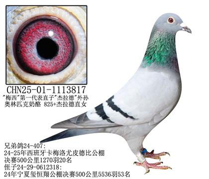 号外: 25年开尔青年棚春棚决赛14名,352名.团体8名 24年公棚成绩: 7月2日B15-6208778"海鸥基特尔"曾孙23-610荣获24年葡萄牙莫雷多一岁鸽公棚决赛 470公里1026羽冠军(当日归82羽) 351公里1136羽13名 瑞典维京公棚鸽王冠军 摩尔多瓦公棚决赛亚军 土耳其至尊公棚决赛冠军(梅西家族) 希腊黄金鸽王公棚长距离鸽王冠军,决赛亚军(梅西曾孙) 罗马尼亚巴尔干公棚决赛冠军(梅西曾孙),亚军(梅西曾孙),13名(梅西曾孙) 波兰吉奥特公棚决赛8名 罗马尼亚五颗星黄金公棚决赛10名("梅西"代表直子"杰拉德"直子)