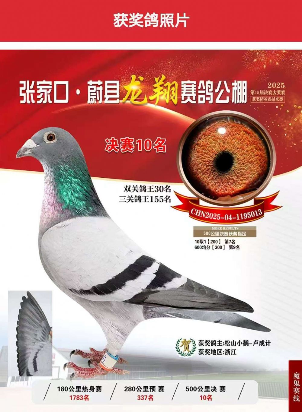 博翔金牌教练刘泽东所有成绩鸽和父母