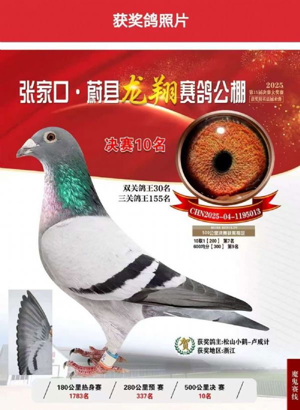 田园牧鸽-卢总(参赛名田园牧鸽,松山小鹤)常年承建全国各地煤矿 高速公路等工程,近几年工地辗转山西 河北 贵州等地,种鸽随工地搬迁,因今年工地完工,即将搬迁,种鸽太多无法携带,特忍痛拍卖一批!卢总近几年巨资引进欧洲原舍 开尔鸽业等全国名家种鸽上百羽!!!光开尔种鸽引进就达几十羽之多!!!因养鸽条件有限只参加公棚比赛,年年都获得高位名次!!