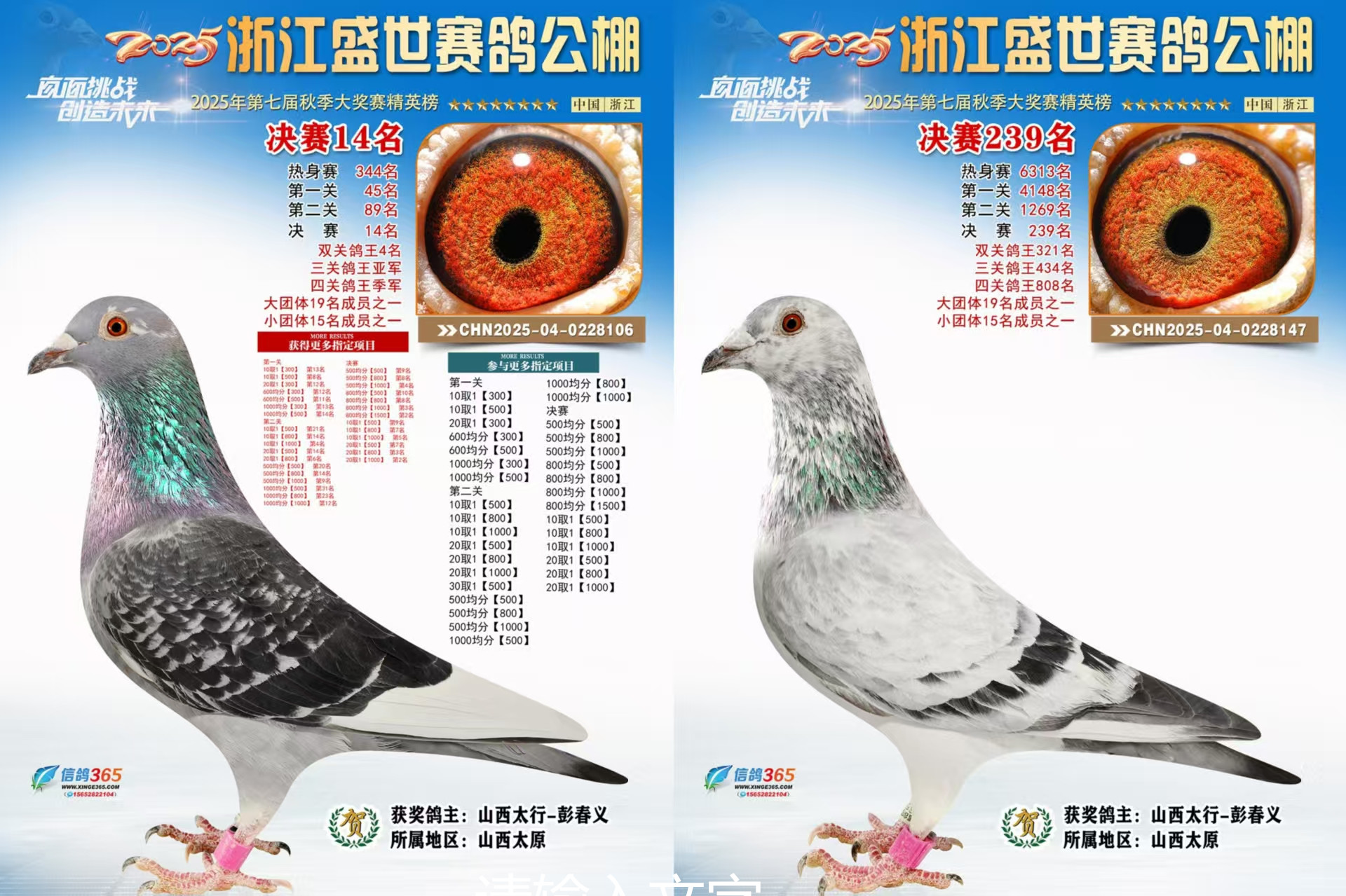 浙江盛世公棚第一关45名 第二关89名 决赛14名 239名三关鸽王亚军