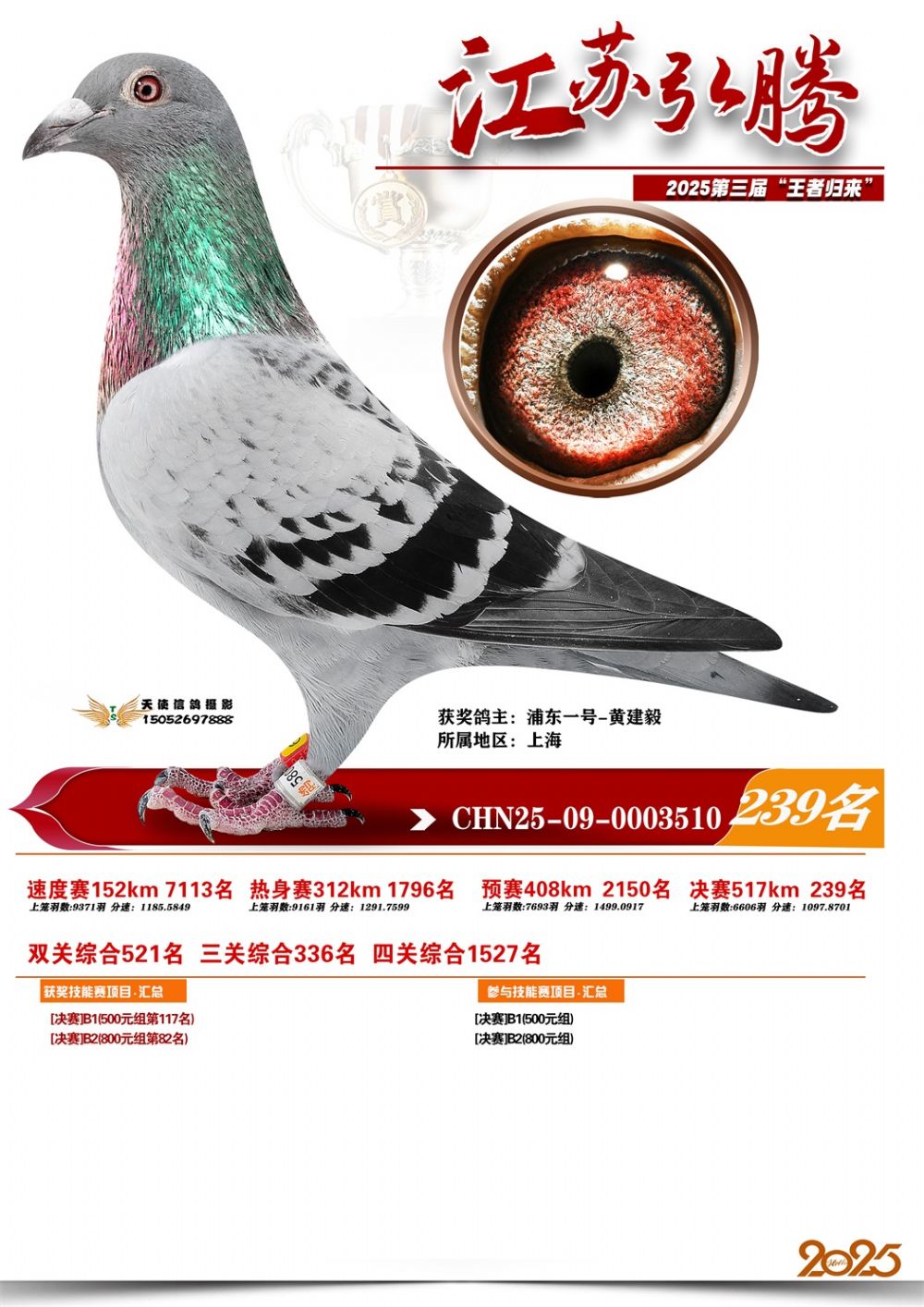 • 鸽主姓名:浦东一号-黄建毅