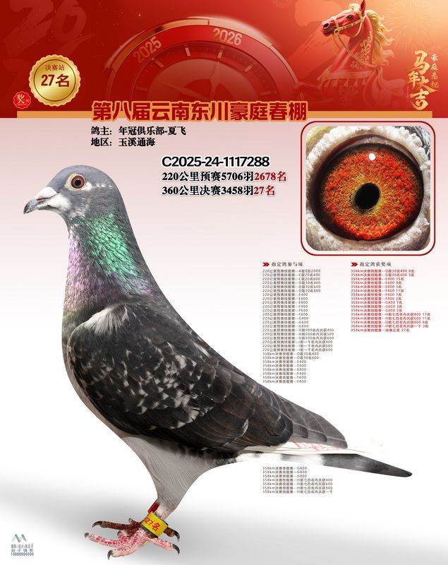 - 鸽主姓名:年冠俱乐部-夏飞