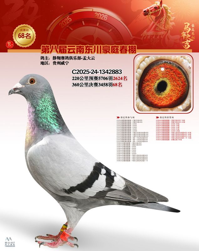 - 鸽主姓名:静翔赛鸽俱乐部-孟大云
