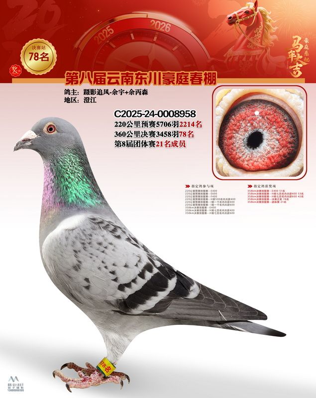 - 鸽主姓名:蹑影追风-余宇+余丙森
