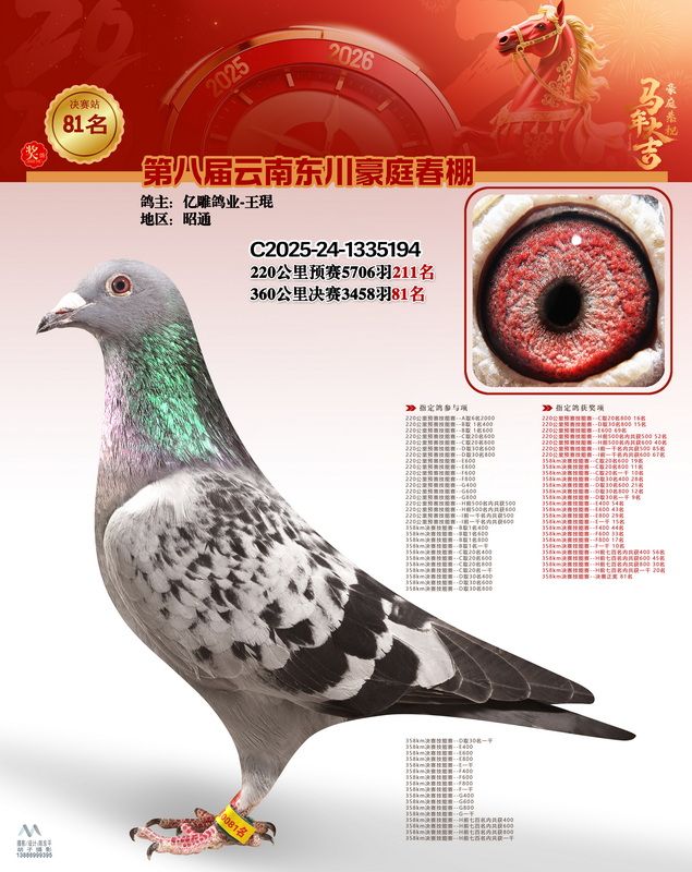- 鸽主姓名:亿雕鸽业-王琨