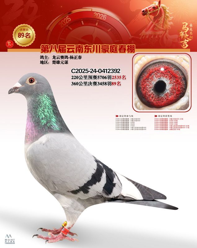 - 鸽主姓名:龙云赛鸽-杨正春