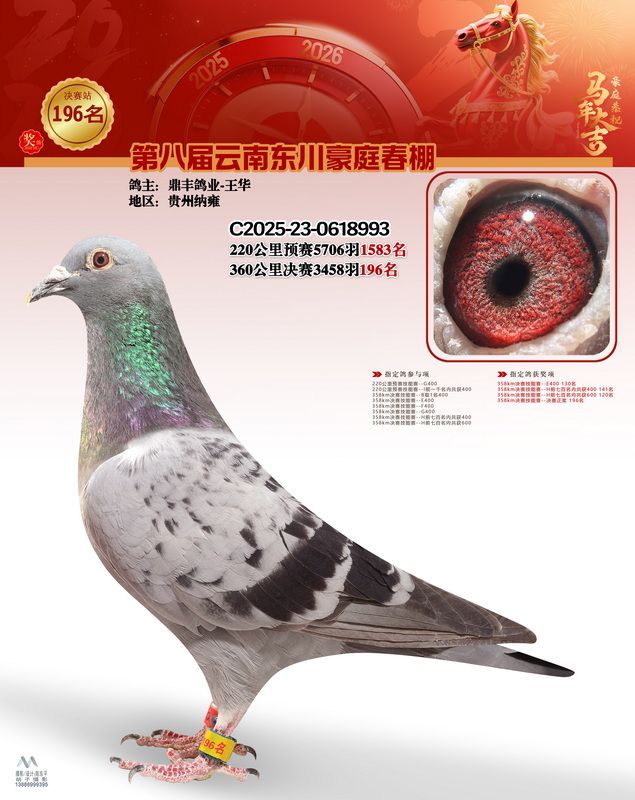 - 鸽主姓名:鼎丰鸽业-王华