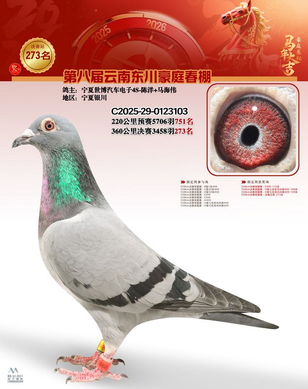 - 鸽主姓名:宁夏世博汽车电子4S-陈洋+马海伟