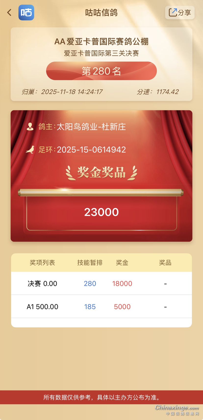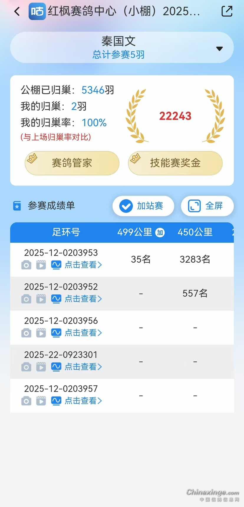 热烈祝贺四川好兄弟用本舍林波尔家族种鸽后代在贵州红枫小棚决赛喜获557名,同窝加站赛35名好成绩!赛绩说明一切,实战才是硬道理!希望明年再创佳绩报喜!