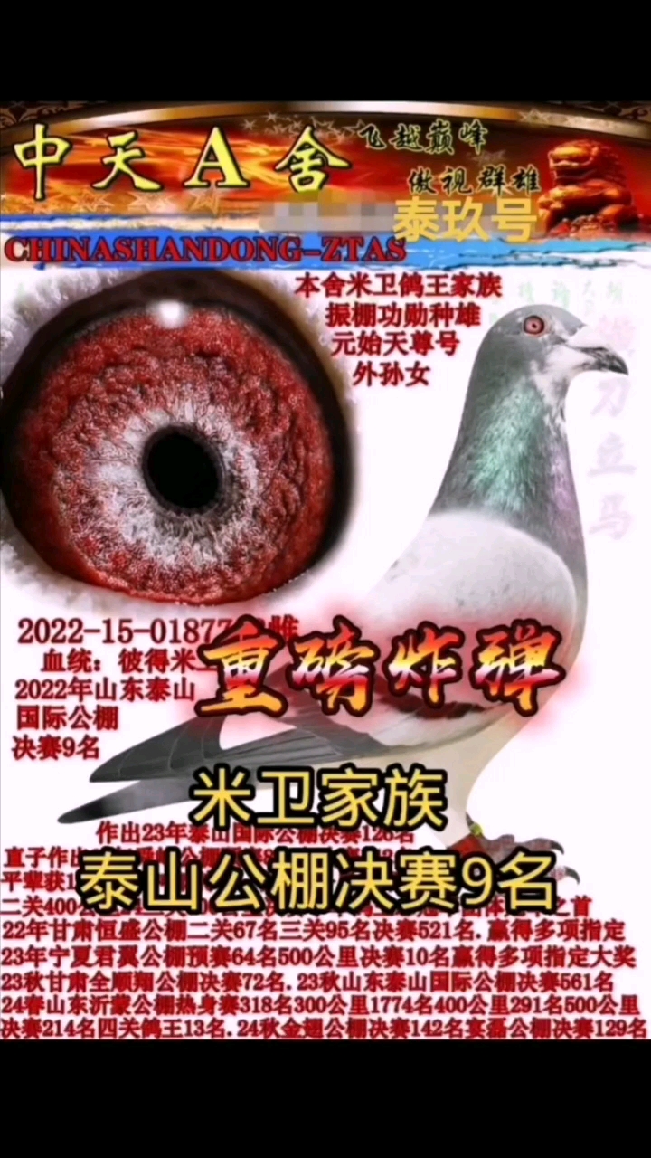 本舍米卫鸽王家族振棚种雄原始天尊号外孙女 泰山国际公棚决赛9名-重磅炸弹