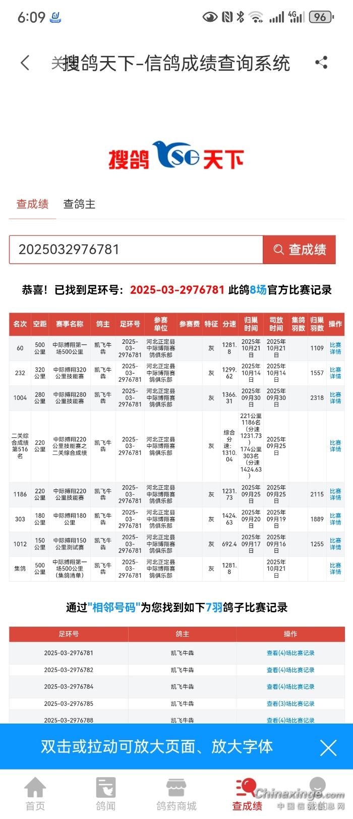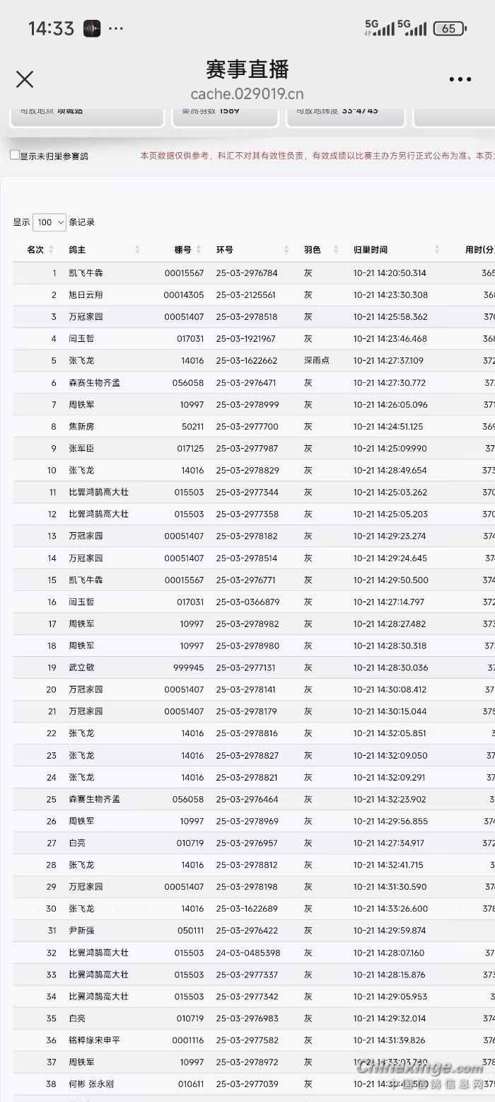 感谢青海钟老弟发来喜报,使用本舍米卫鸽王家族特留种鸽征战甘肃诚翔公棚今天艰难赛事当日归巢率不足百分之20的情况下拿下453名同时赢得两组旨定奖项。本舍米卫鸽王家族你有信心他定不负期待。