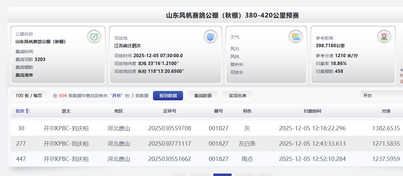 本场赛事盖比锋芒尽显,预祝开尔及鸽友在接下来比赛中一路高歌猛进,载誉而归!