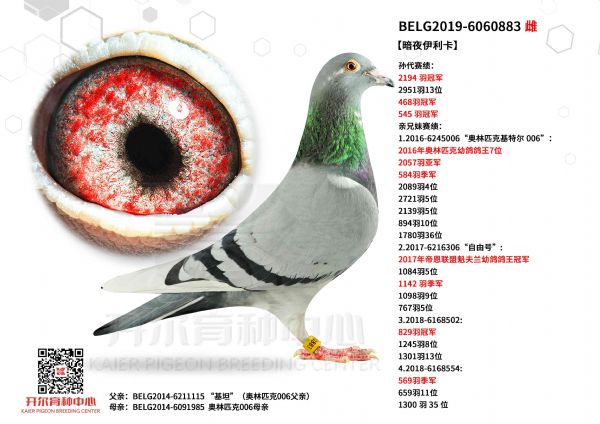 84名源自利奥,父亲是瓦肯与暗夜伊利卡的结合,瓦肯为奥林匹克003多重近亲回血,利奥吉伯特王者风范一脉相承。暗夜伊利卡是奥林匹克基特尔 006的亲妹妹。母亲是路伯593号直孙女,路伯593为德国全国鸽王殿军,承袭了利奥神奇雌鸽王的血脉。
