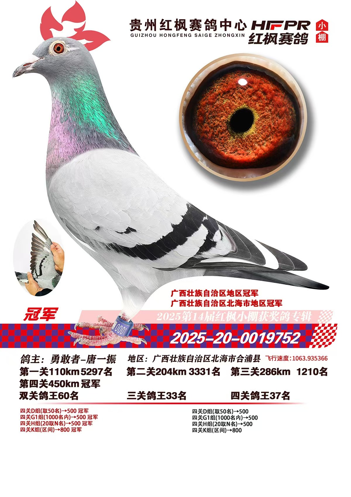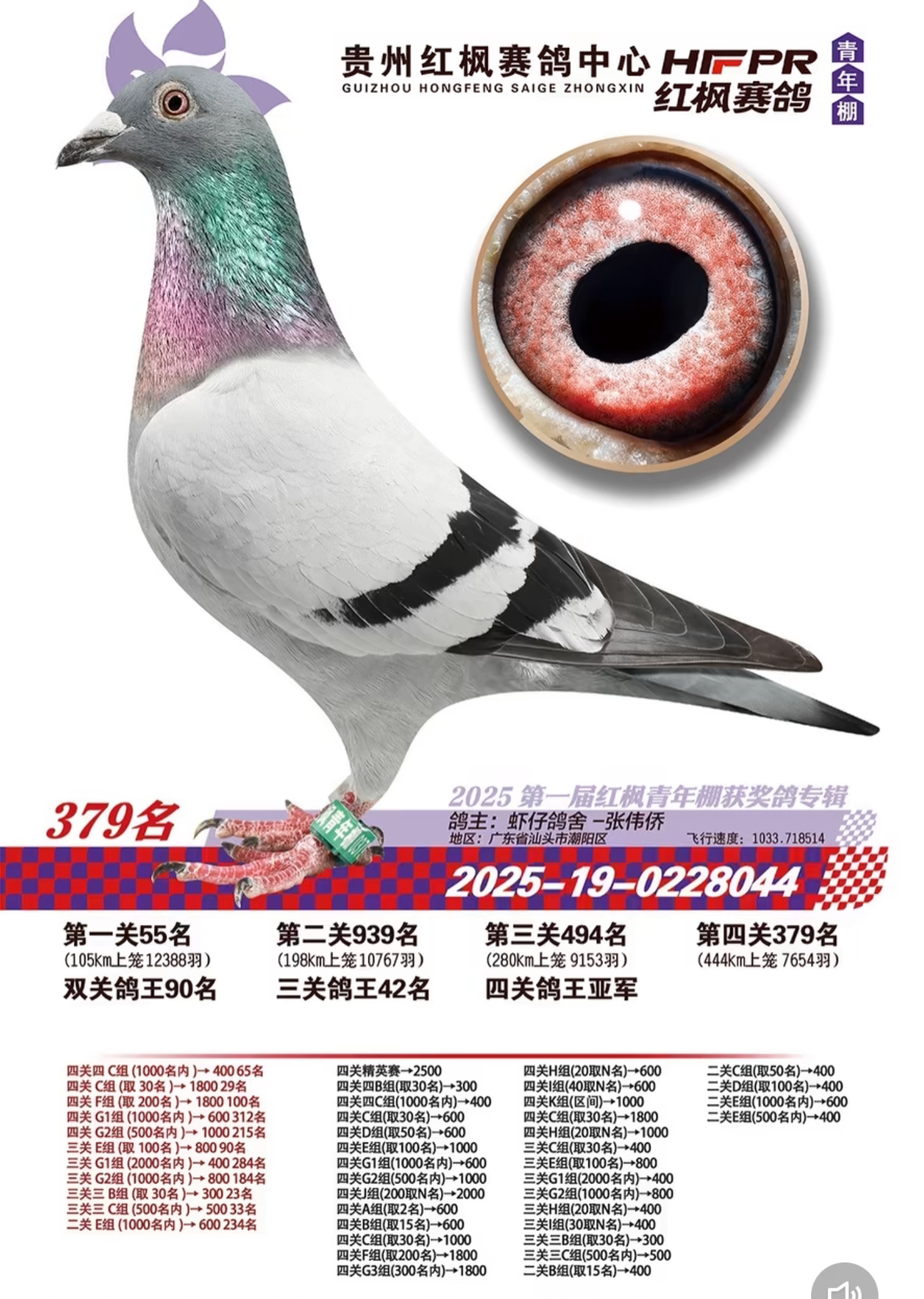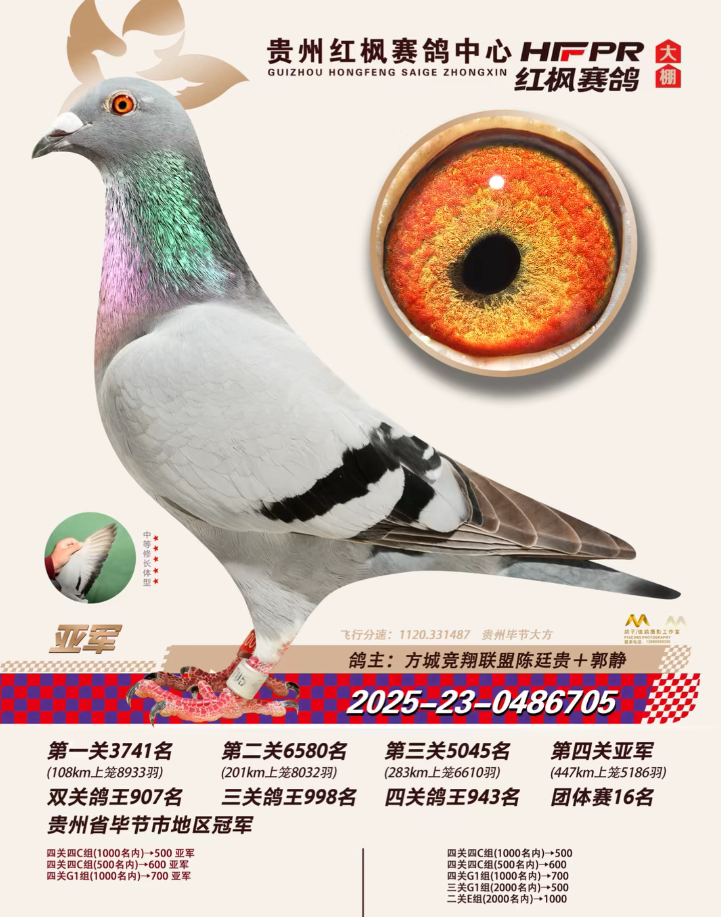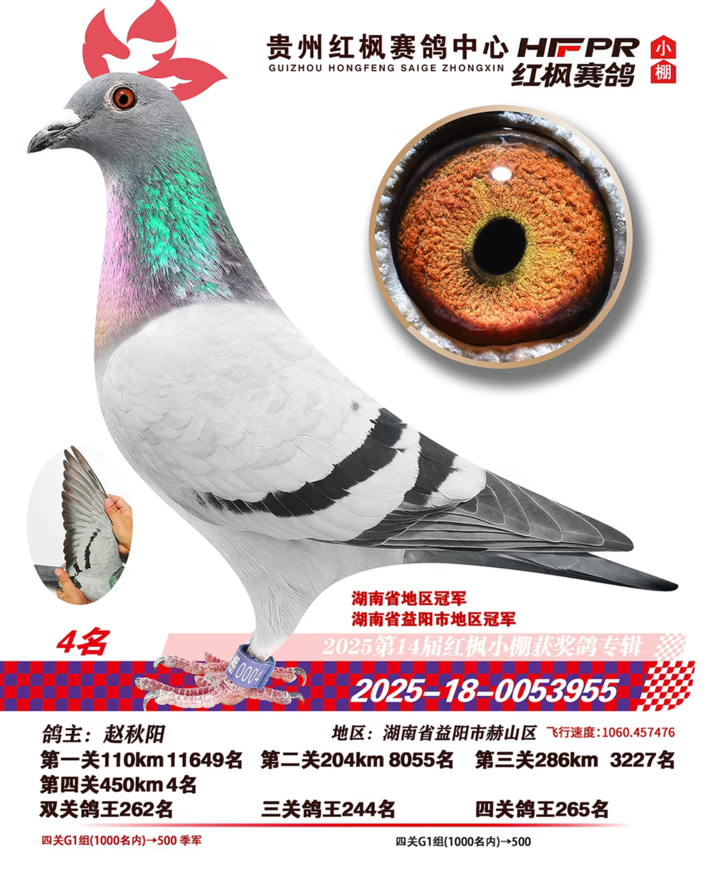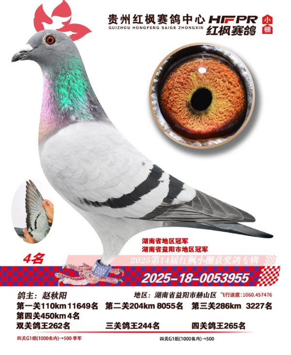 西南赛线艰苦卓绝,红枫赛场高手云集。七次闯入前十的卓越战绩,是开尔铭血能够征服不同地理气候、适应不同赛场环境的明证。期待这份历经严苛考验的基因力量,持续为鸽友在更多巅峰对决中,打开胜利之门。