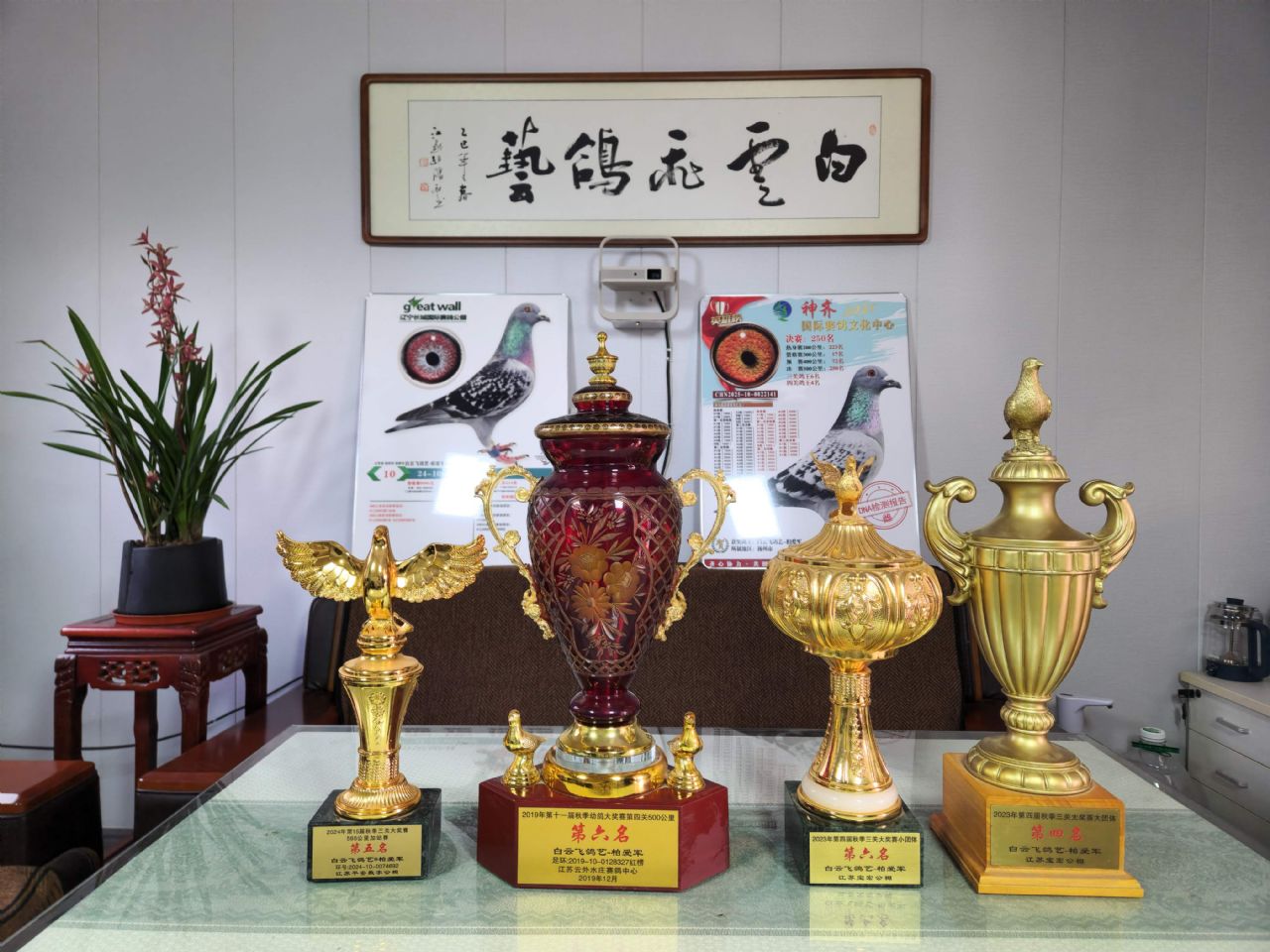 奖杯与获奖鸽