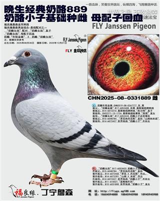 CHN2025-08-0331889 父:奶酪年轻金雄 CHN2019-08-0267777 灰 黄 祖父:“奶酪金雄”B17-6053408 灰黄 葛斯顿招牌种鸽 祖母:“奶酪女孩”B17-6053433 奶酪小子近亲曾孙 母:“奶酪女孩”B17-6053433 奶酪小子近亲曾孙 外祖父:B15-6048784 “罗尼和丹尼斯”直孙 外祖母:B14-6072427 世界铭鸽“奶酪小子”外孙女