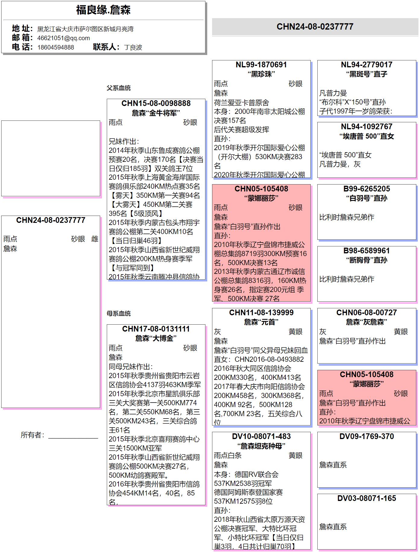 曾外祖母:“蒙娜丽莎”CHN2005-105408 白羽号孙