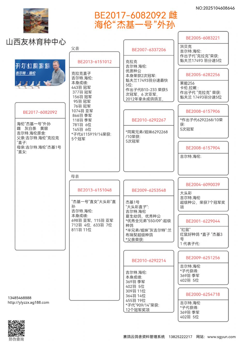 世界铭鸽 “大头彩" 直孙X直曾孙女